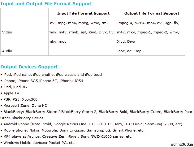 iPod, iPhone, iPad, Apple TV, PSP, PS3, Xbox 360, Wii, Pocket PC, Blackberry, Mobile phones, Zune, Creative Zen, Archos or other portable video devices