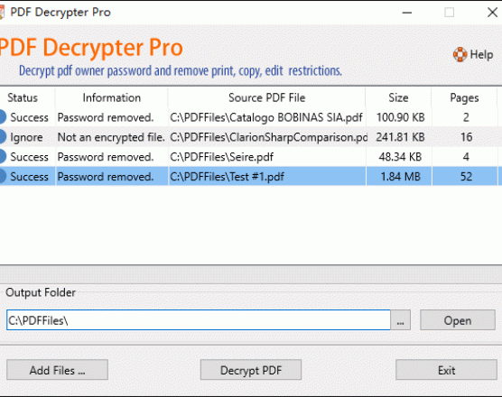 PDF Decrypter Pro is an award-winning software which is designed to easily decrypt protected Adobe Acrobat PDF files (with owner password set) as well as remove edit, print and copy restriction.