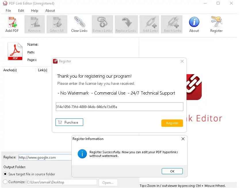 With this easy-to-use software, you can quickly extract links from PDF files, delete them, or replace them all with a different URL.