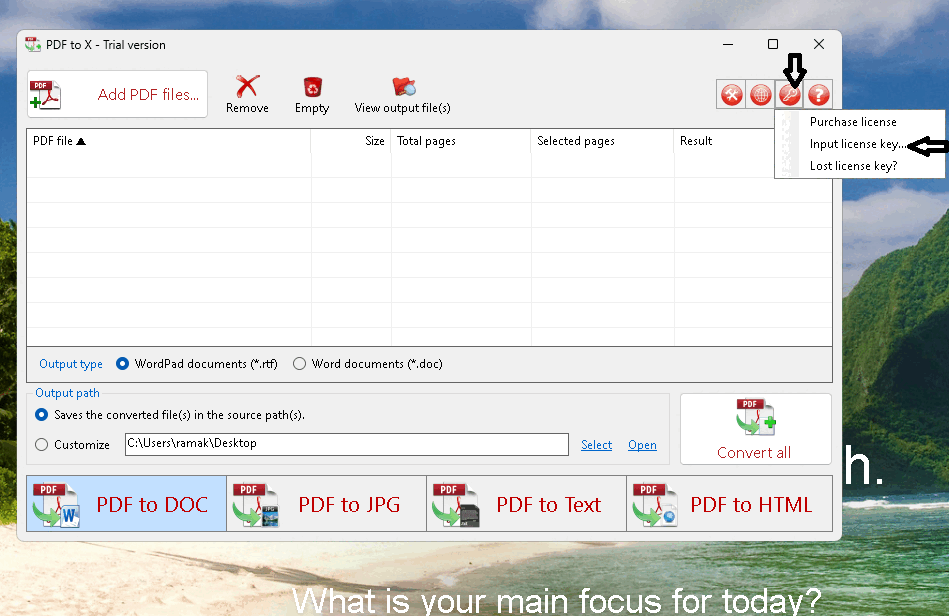 Install the software, launch it, and on the main app, click the “License Key” button.