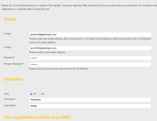 Confirm or activate your account by clicking the link in the email that you got from proDAD(login-area@prodad.com).
