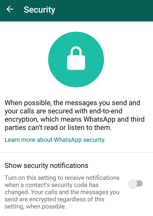 Enabling ‘Security notifications’ option will tell when the security key used in a conversation changes, users concerned about this WhatsApp Loophole, it’s better to lookout for secured alternatives such as Signal.