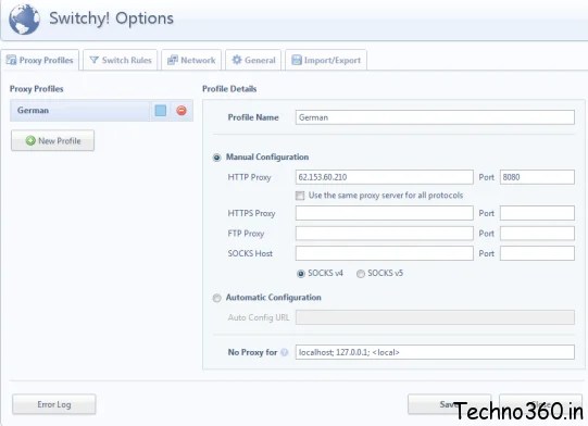 Proxy Switchy! is a proxy manager for Google Chrome, it allows users to manage and switch between multiple proxy profiles quickly and easily.