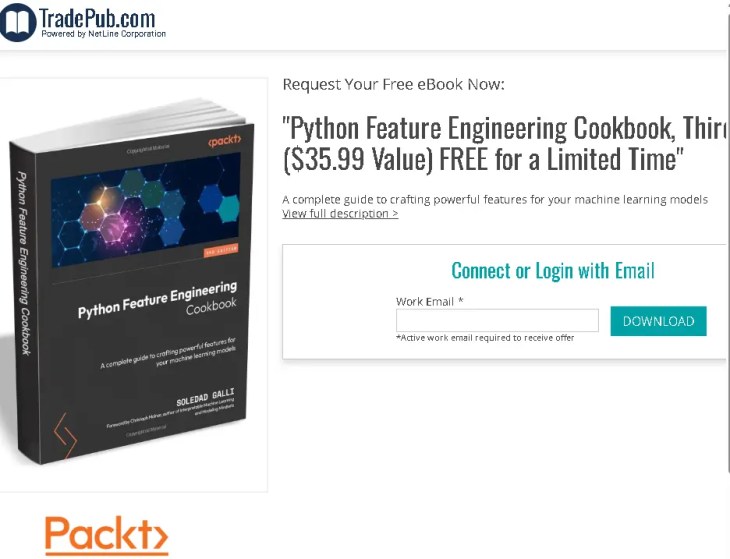 TradePub, in collaboration with the publisher “Packt,” is providing a limited-time free download of the $39.99 Python Feature Engineering Cookbook, Third Edition ebook.
