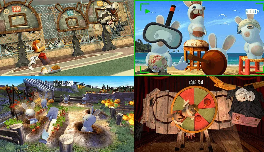 We can play the game in two distinct ways: story mode and score-based mode. Gameplay in story mode takes place over the course of fifteen days, during which the Rabbids hold Rayman captive. At the end of each day, Rayman faces a “boss trial” that is much more difficult than the previous two.