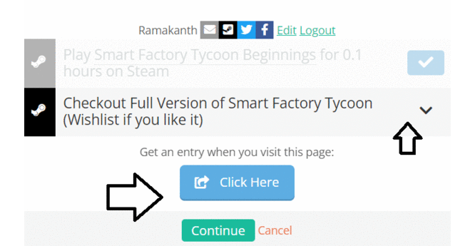Next, once again visit the giveaway page and click the “Continue” button. If you have played the game for more than 10 minutes, you will see a tick mark beside the first task.