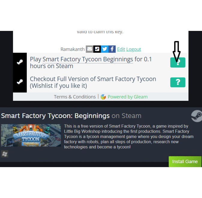 That’s it the two tasks are finished and the giveaway page will display the Steam Key.