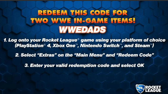 Launch Rocket League, go to ‘Extras’ in the Main Menu and select ‘Redeem Code’, then enter the code as Wrestlemania