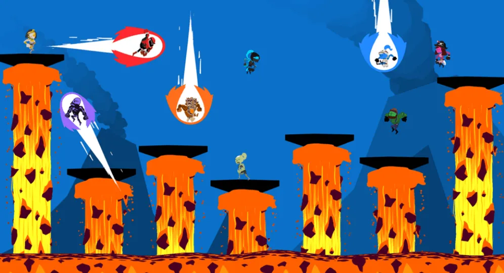 In this fast-paced and entertaining multiplayer game, up to nine players can compete locally or online. The levels are colour-coded, and as the background colour shifts, platforms and obstacles of the corresponding colour vanish