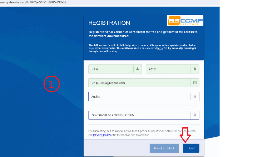 Begin by inputting your first and last name and email address and selecting your country before hitting the “Send” button.