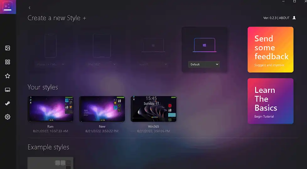 You can start from scratch and make your own style (choose “blank”), or you can choose an existing style (default) and change it to your liking. Wallpapers, widgets, and the dock are all parts of a style.