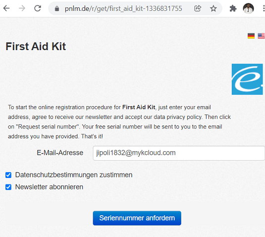 Enter your email address, select the boxes (agree on terms) and click the “Request Serial Number” button.