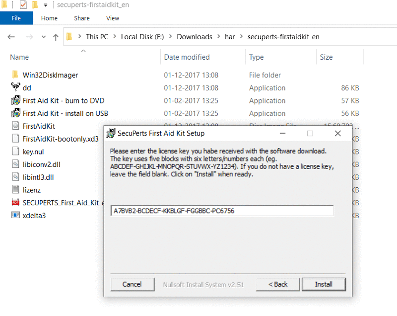 Extract the Zip file, and run either the “First Aid kit -Install on USB”.exe file or the “burn to DVD”.exe file.