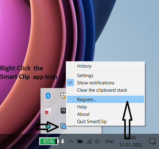 Right-click the app icon on the taskbar (or taskbar jump list) and select the “Register” option.