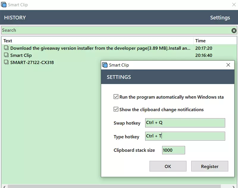 Smart Clip is a clipboard manager that greatly simplifies clipboard usage and saves clipboard history.