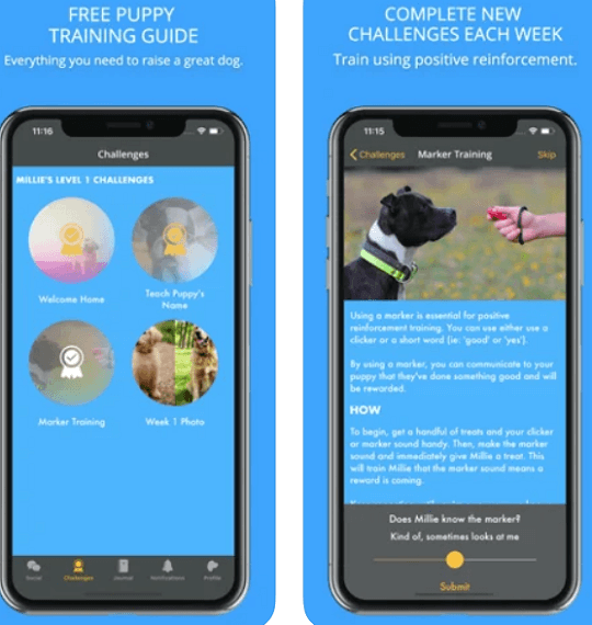 The app offers a week-by-week training guide based on positive reinforcement techniques. It will keep you on track and measure your puppy’s progress while you both have fun taking pictures and learning new tricks.