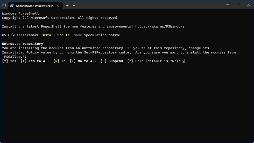 Install-Module -Name SpeculationControl