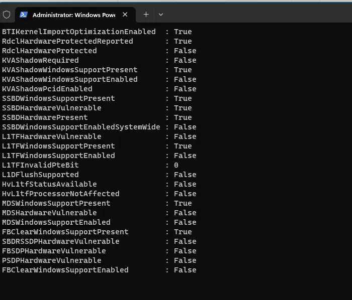 Get-SpeculationControlSettings