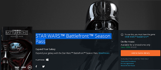 Star Wars Battlefront Season Pass is available free for PC, PlayStation 4 and Xbox One for a limited time.