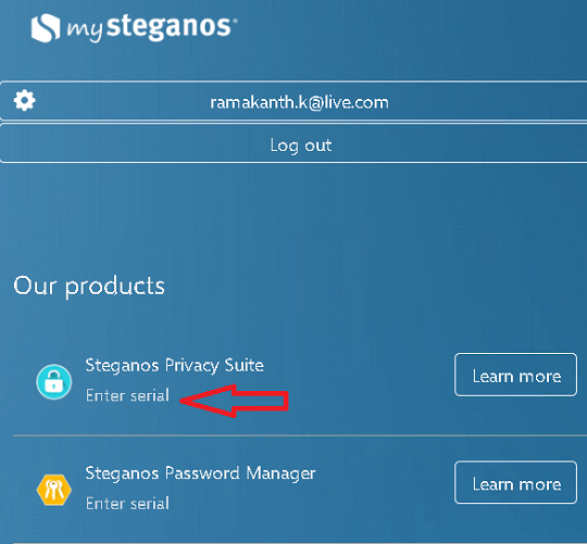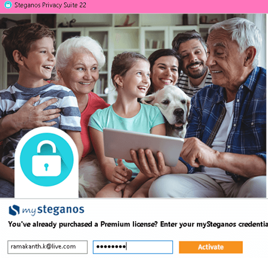 Install the software and launch the app, enter your email address and password (Steganos account credentials).