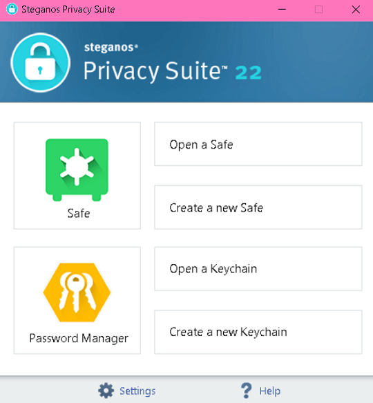 The suite combines the Steganos Security software products Steganos Safe and Steganos Password Manager.