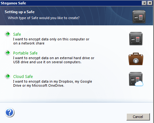 Steganos refers to these virtual drives as “safes,” and you can create three types of them: