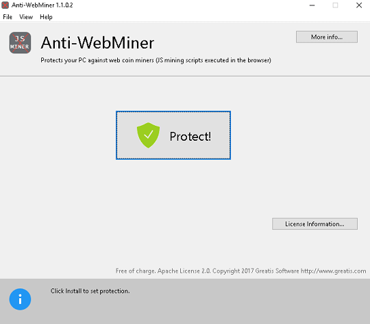 This is a simple and tiny software (just 474 KB) for Windows users that protects your PC against Crypto currency miners.