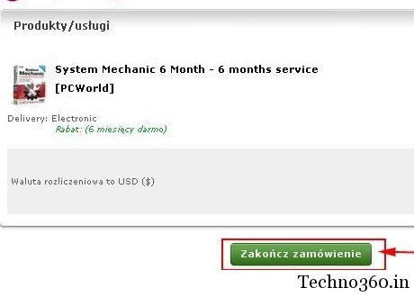 - Next to Confirm the order click on “Zakoncz zamowienie” button