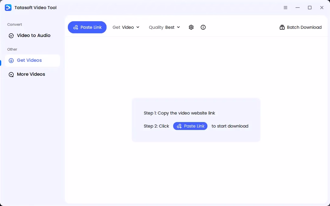 - Paste the Video URL: Copy the link of the video you want to download and click “Paste Link” in the software. Tatasoft will automatically analyze the link and begin the download immediately.