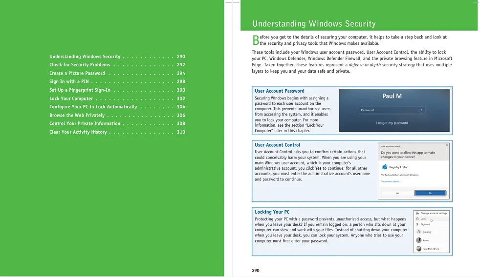 - The visual guide also covers advanced topics, such as security, privacy, backup, recovery, troubleshooting, and networking. This ebook will teach you how to secure your computer from malicious software, encrypt your files, back them up, share your printers and files, use OneDrive, and get the most out of Microsoft 365.