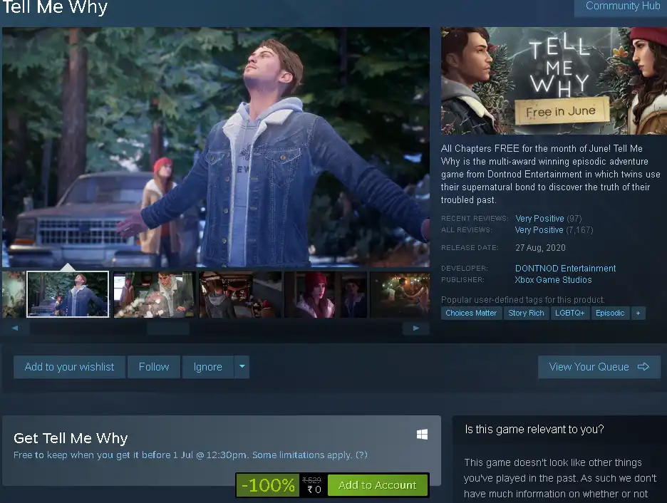 Tell Me Why: Chapters 1-3 Game (worth $19.99) now available for free on both  Microsoft Store and Steam Store.