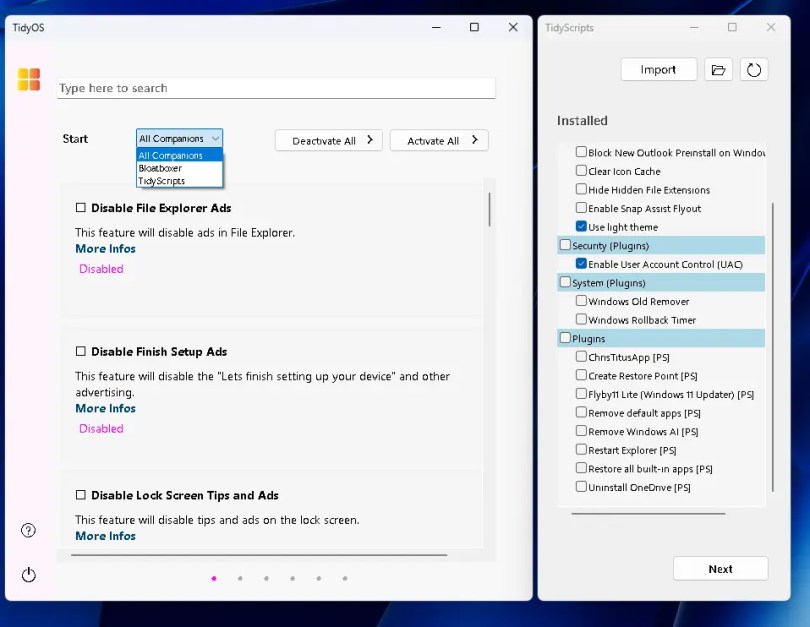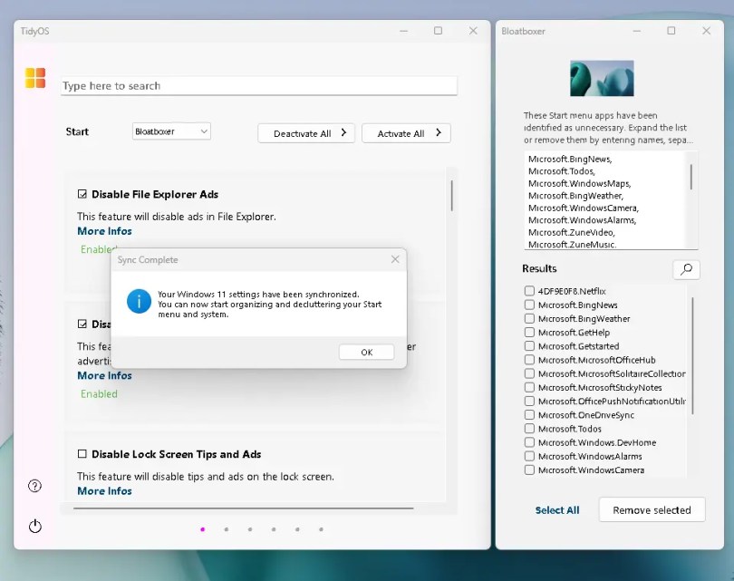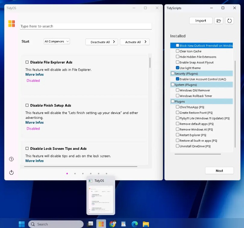 Whether your goal is to reduce telemetry, disable unused settings, or remove bloatware, TidyOS guarantees a great, easy-to-use method to personalize your experience.