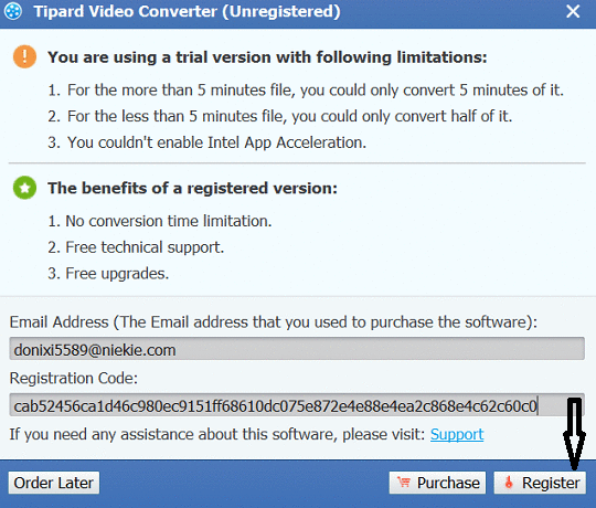 You will receive an email from Tipard (registration@tipard.com) in your inbox with the license code or registration code.