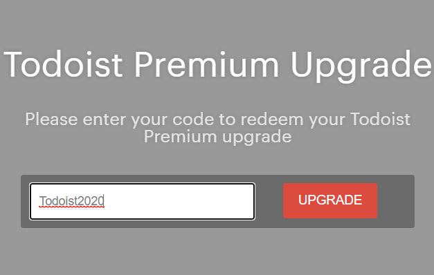 Create an account, or log in to your account, then enter the code as Todoist2020