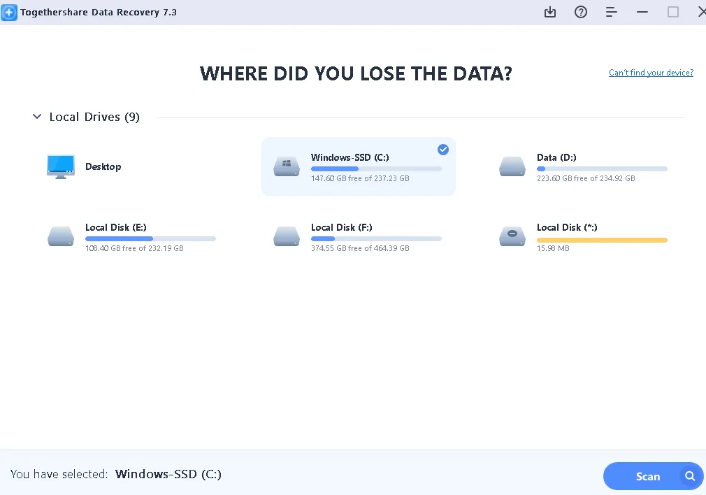 TogetherShare Data Recovery is a complete easy-to-use data recovery software. It is pretty simple to use. And it is fully compatible with all popular Windows operating systems. If you want to quickly and completely recover lost data, just try it.