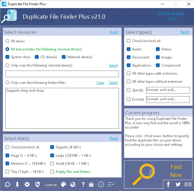 When you first open the app, you’re greeted by a menu of options. From there, you can choose what kind of drives to scan, such as system, CD, or network drives. Obviously, if you don’t know where the duplicates are, the best thing to do is scan all the drives.