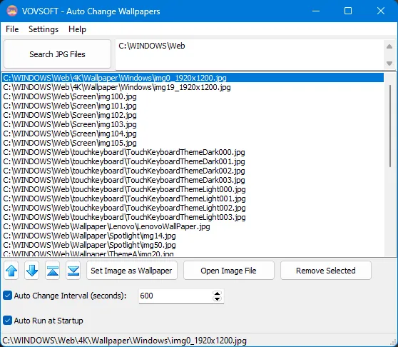 To change the wallpaper, just load the images you want to use, select the image you want to set as your wallpaper, and enter the time interval in the bottom part of the window.