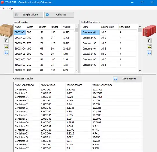 - Developed to calculate, load, and optimize freight containers.
