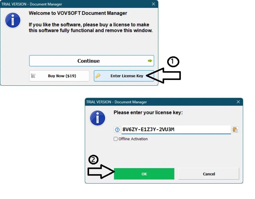 - When the Activation Window displays (see screenshot), click “Enter License Key.”