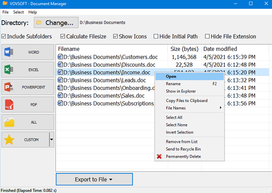 In a single Window, you can manage Word, Excel, PowerPoint, and PDF files. Additionally, you can customize the file types that you wish to manage.
