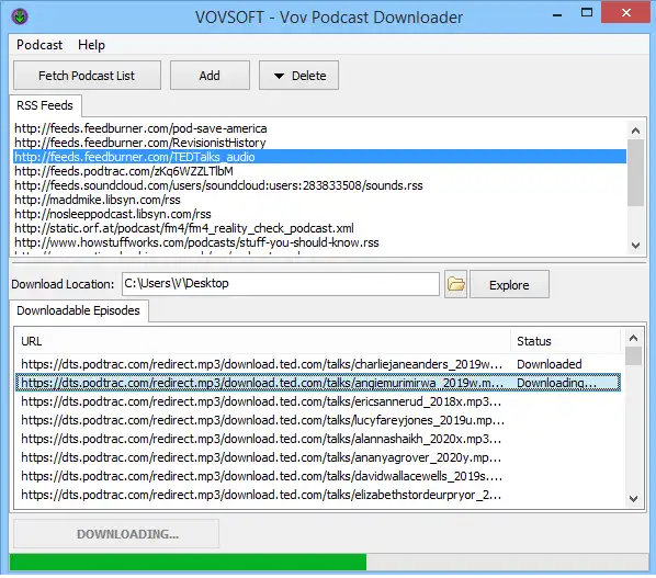 Vovsoft Podcast Downloader is a Windows program that lets you add RSS feeds from which you want to get podcast episodes.