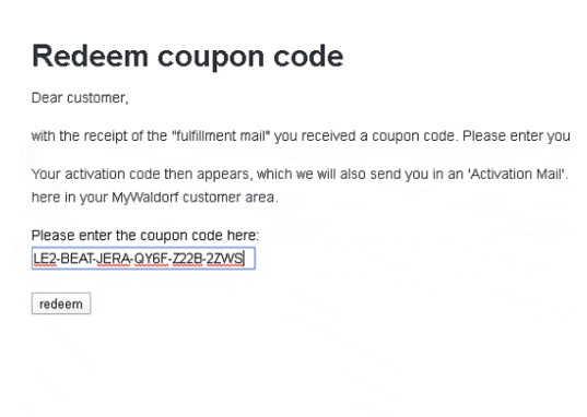 Next, you will receive a confirmation email from Beat (software@beat.de), click the confirmation link to receive activation or coupon code.