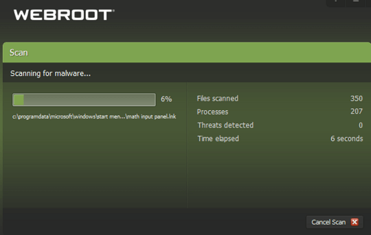 The default deep scan surveys your entire computer for rootkits, trojans, and other threats. Throughout the scan, SecureAnywhere searches all potential threat hiding spots, including drives, files, and system memory.