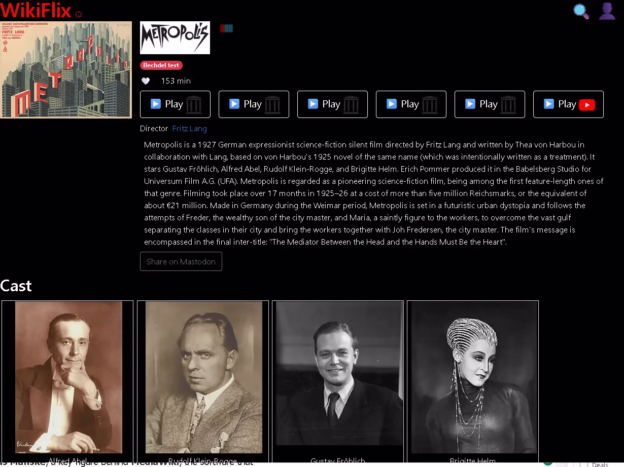 WikiFlix is a smart aggregation platform that curates public domain films from trusted sources such as Wikimedia Commons, Internet Archive, and YouTube. Instead of hosting videos itself, WikiFlix embeds official players from these platforms into a clean, streaming-style interface.