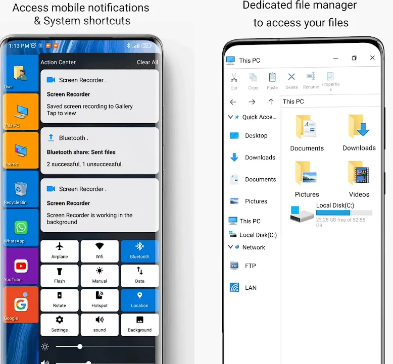 Naturally, a larger mobile device, like a tablet, will benefit from the visual appeal of this launcher. In actuality, Windows 11’s desktop is not designed for screens that are extremely small.