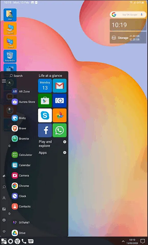 After you’ve downloaded and run the launcher, your phone’s home screen will look just like Windows 11, complete with the taskbar and the notification area icons.