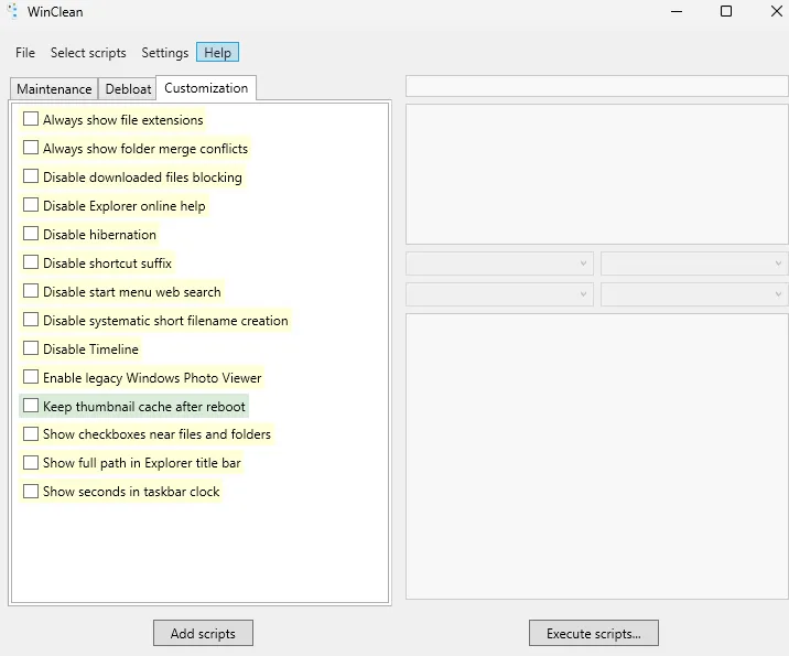 WinClean is a very simple program to use. The user-friendly interface of this program opens with three tabs: maintenance, debloating (Cleaning) and customization.