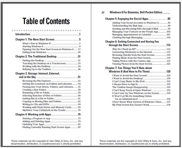 Windows 8 For Dummies eBook Table of Contents :
