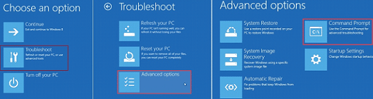 3.Choose” Troubleshoot > Advanced options > Command Prompt”.