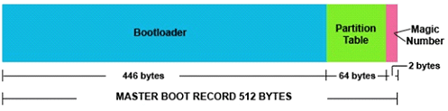 Boot loader is a program that loads an operating system when a computer is turned on. Partition table records partition information on local disks. Magic number(0xAA55/0x55AA) marks the device as a valid bootable media.